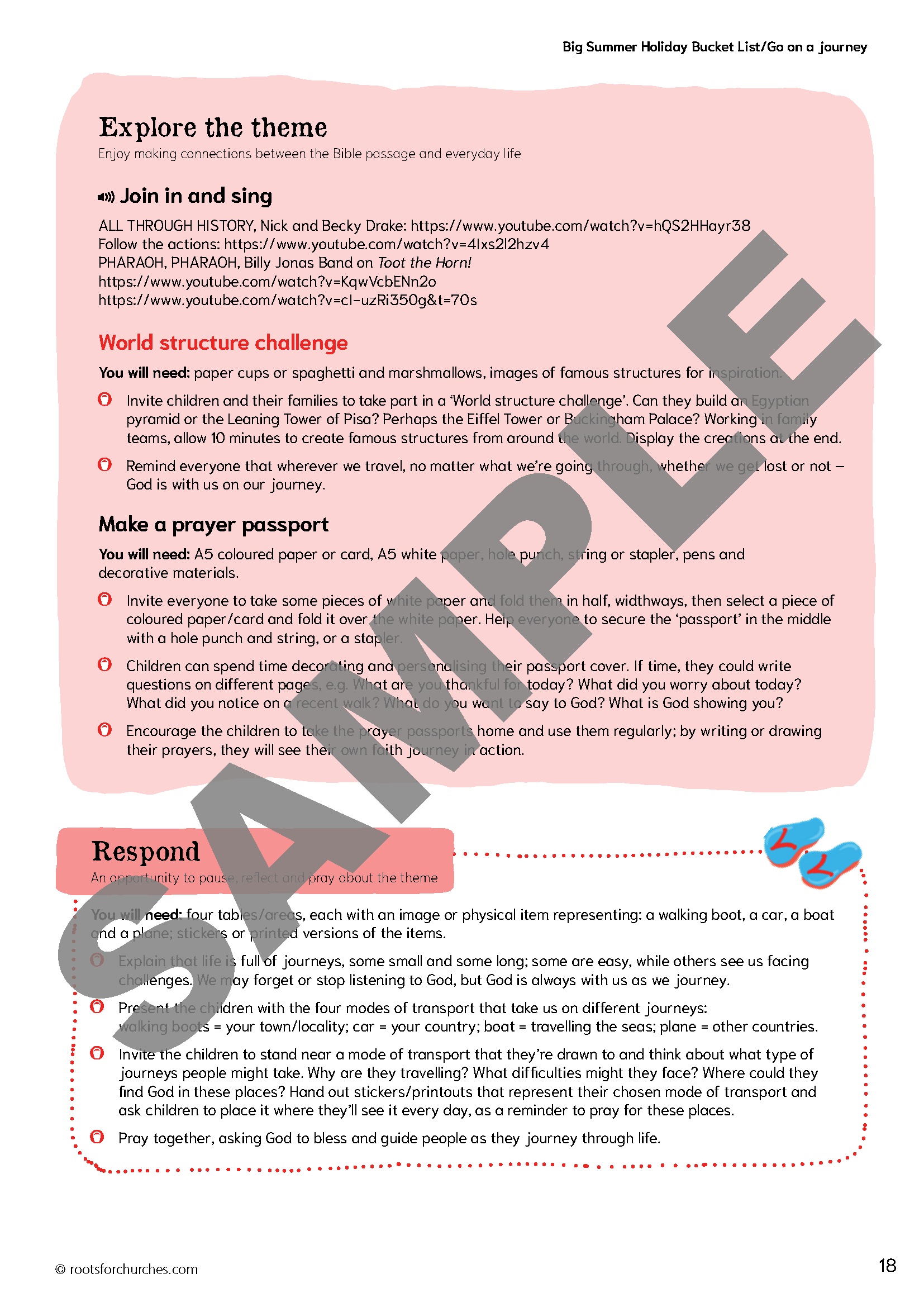 You can run the Big Summer Holiday Bucket List as a holiday club, during your usual Sunday slots, or as a seasonal community event. The six sessions can be tailored to your particular group and setting: each will take a minimum of an hour, but you can vary activity lengths, swap the order around and pick and choose the themes. Parents, carers and friends can get involved too. The main activity for each session is an invitation to others so everyone can connect and explore God’s big story together.
